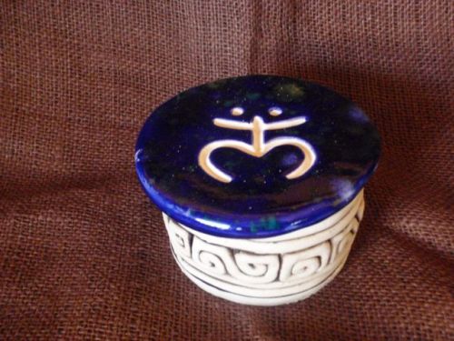 /Wall incense holder of ceramic slab with carving of coqui petroglyph. Painted glaze with crystals. Comes with leather cord to hang on wall.